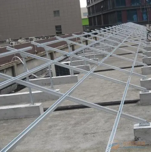 Flat roof bracket system is a solar photovoltaic bracket system, suitable for flat roof roofing. The system is mainly composed of columns, beams, diagonal braces, guide rails, galvanized C steel channel and other components, which has the characteristics of simple structure, convenient installation and strong bearing capacity.